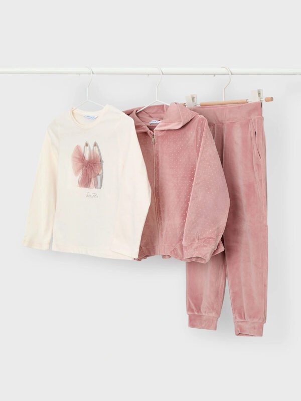 52,95 €Tuta tre pezzi per neonata costituita da una felpa, un pantalone sportivo e una maglietta abbinati.