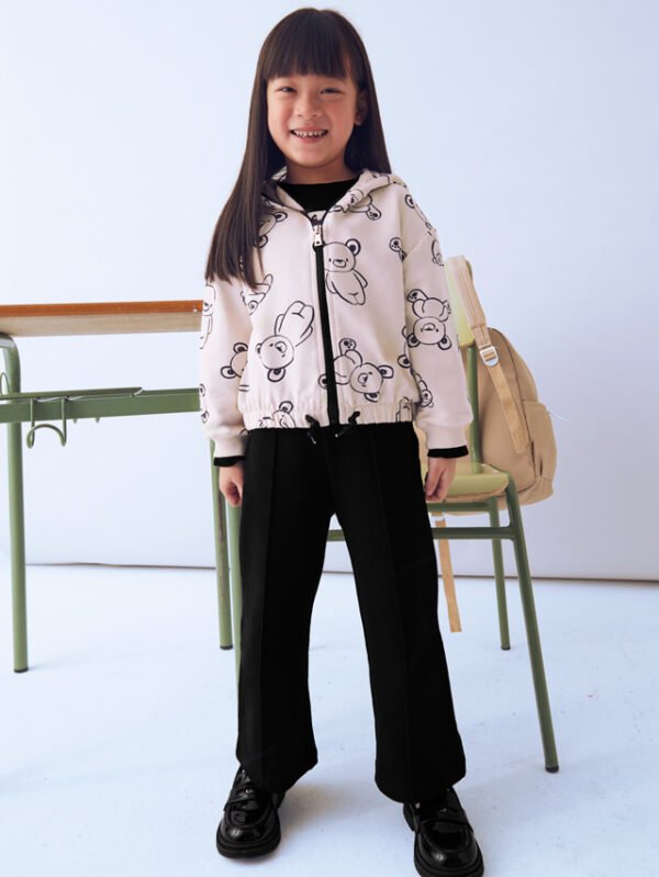 Felpa manica lunga per bambina. Colletto con cappuccio. Chiusura centrale con cerniera. Design con cordoncino regolabile nell'orlo per una migliore vestibilità. Elementi decorativi: Serigrafia (print) . Pantalone per bambina. Elastico in vita. Pantalone per bambina. Elastico in vita. Orlo elasticizzato per una migliore vestibilità. Tasche funzionali nella parte anteriore.Tuta 3 pezzi neonata