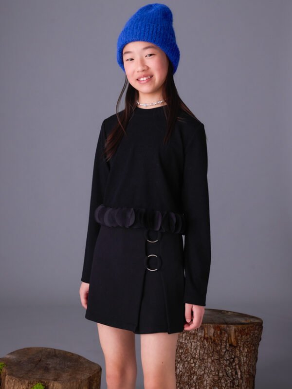 37,95 €Top manica lunga per ragazza. Girocollo. Confezione in diversi tessuti per ottenere un design unico e speciale. Elementi decorativi: fasce decorative.
