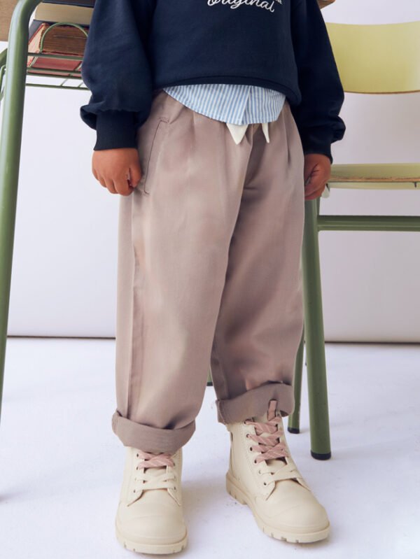 25,95 €Pantalone per neonato stile cargo: ampio nella parte superiore, con cavallo basso e vestibilità normale sulla gamba. Elastico in vita. Tasche laterali.