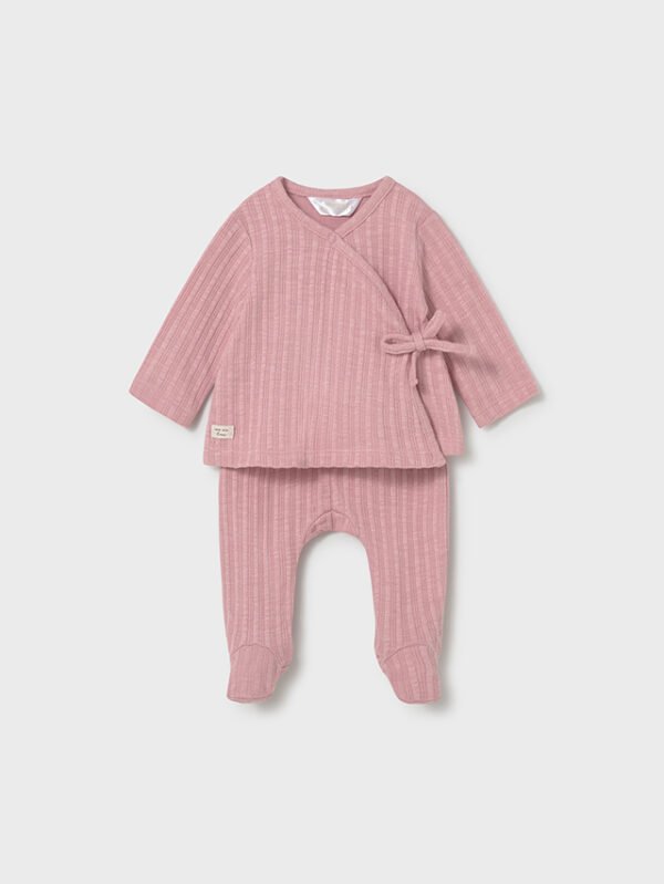 Pigiama manica lunga per neonato. Chiusura con bottoni a pressione nella parte posteriore. Scollo incrociato e apertura laterale completa con bottoni a pressione. Caldo cotone morbido al tatto e vellutato.
