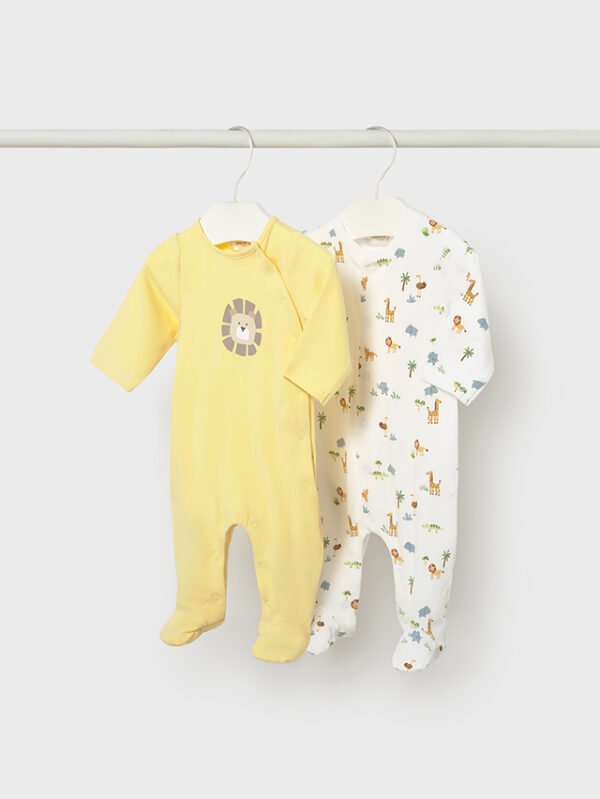 Pigiama manica lunga per neonato. Scollo incrociato e apertura laterale completa con bottoni a pressione. Chiusura con bottoni a pressione nell'interno cosce per agevolare la vestibilità. Tessuto 100% cotone. Design stampato. I polsini delle maniche nelle taglie piccole di questo modello (0-0 a 4-6 mesi) fungono da manopola.