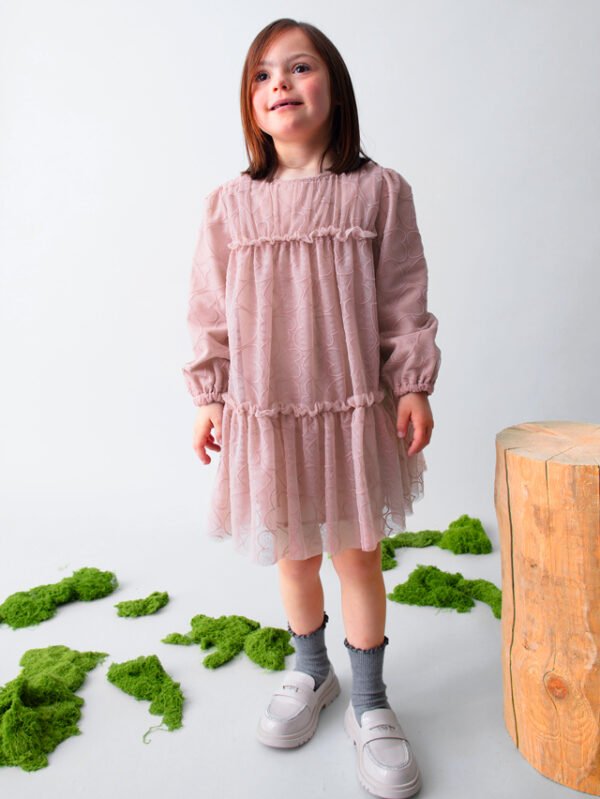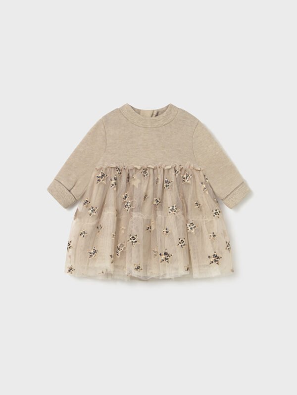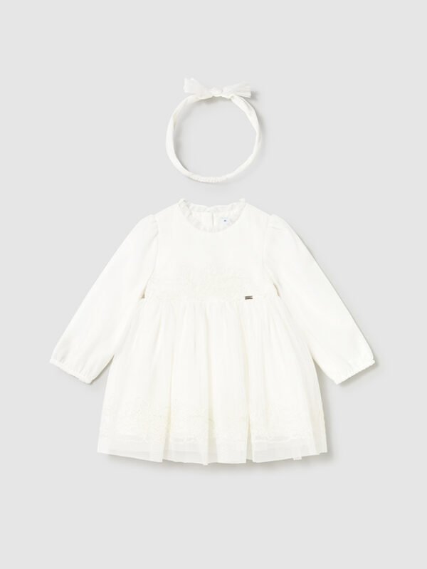 Vestito manica lunga per bebé. Apertura posteriore con cerniera invisibile. Confezione in tulle leggero e vaporoso. Modello con fodera interna. Modello con riccio. Elementi decorativi: ricami. Questo esclusivo articolo appartiene alla collezione Cerimonia ed è stato pensato per ricorrenze, eventi e occasioni speciali. Cerchietti da cerimonia per bebé, ideale come accessorio per le occasioni speciali. Confezione in tulle leggero e vaporoso. Elementi decorativi: fiocco.Vestito combined in maglia neonata