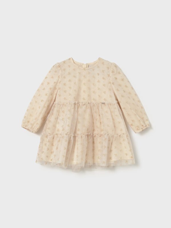 45,95 €Vestito manica lunga per neonata. Chiusura con cerniera nella parte posteriore per un vestibilità rapida e comoda. Confezione in tulle leggero e vaporoso. Modello con fodera interna. Modello con riccio e volant.