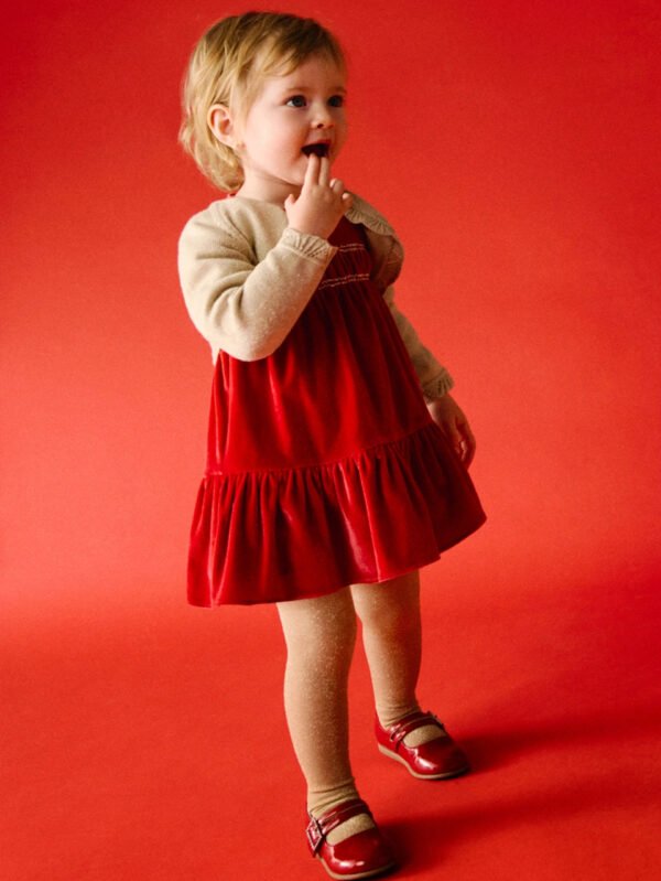 29,95 €Vestito manica lunga per neonata. Girocollo. Chiusura con bottoni sulla schiena per facilitare la vestibilità del capo. Tessuto in tricot morbido al tatto