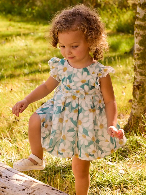 Vestito cerimonia con volant e fiori stampati neonata