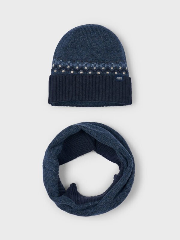 Originale completo due pezzi per bambino. Cappello bambino in tessuto caldo e flessibile che garantisce una vestibilità comoda e protegge dal freddo. Sciarpa modello scaldacollo per bambino, un must have per il suo guardaroba invernale.