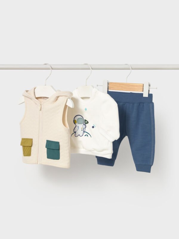 52,95 €Tuta tre pezzi per neonato costituita da una felpa, un pantalone sportivo e una maglietta abbinati.