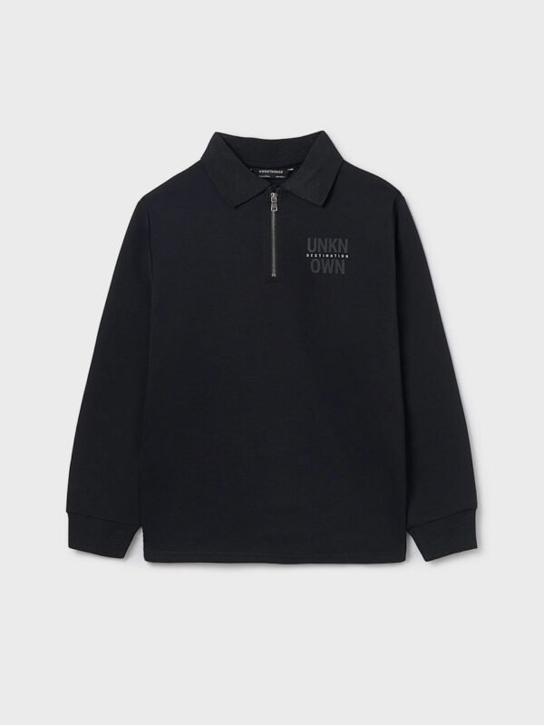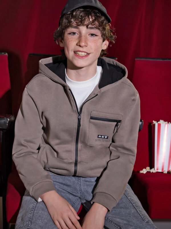 35,95 €Felpa manica lunga per bambino con dettagli a contrasto. Colletto con cappuccio. Chiusura centrale con cerniera. Orlo con dettagli colorati a contrasto. Elementi decorativi: Serigrafia (print).