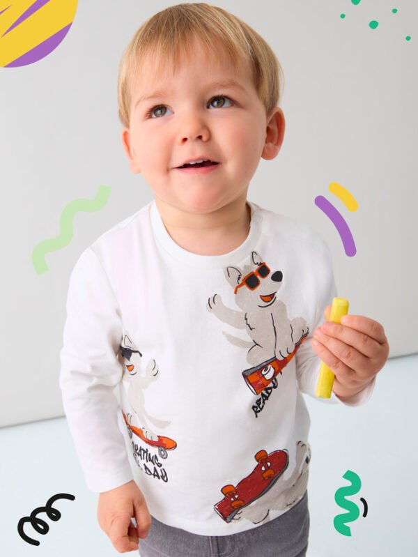 19,95 €Maglietta manica lunga per bambino. Tessuto 100% cotone. Elementi decorativi: Serigrafia (print).