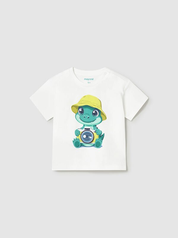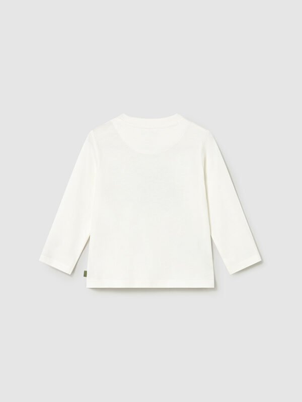 Maglietta manica lunga per neonato. Girocollo. Chiusura con bottoni a pressione sulla spalla che facilitano la vestibilità del capo. Elementi decorativi: Serigrafia (print).
