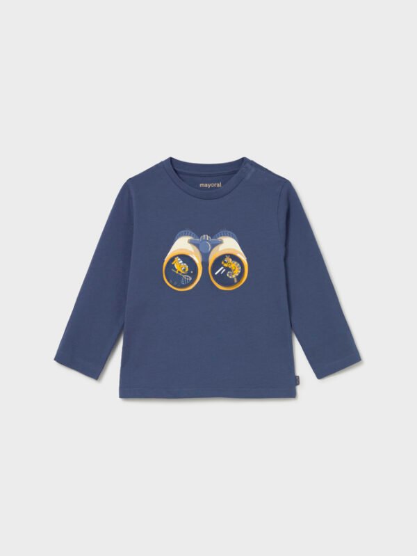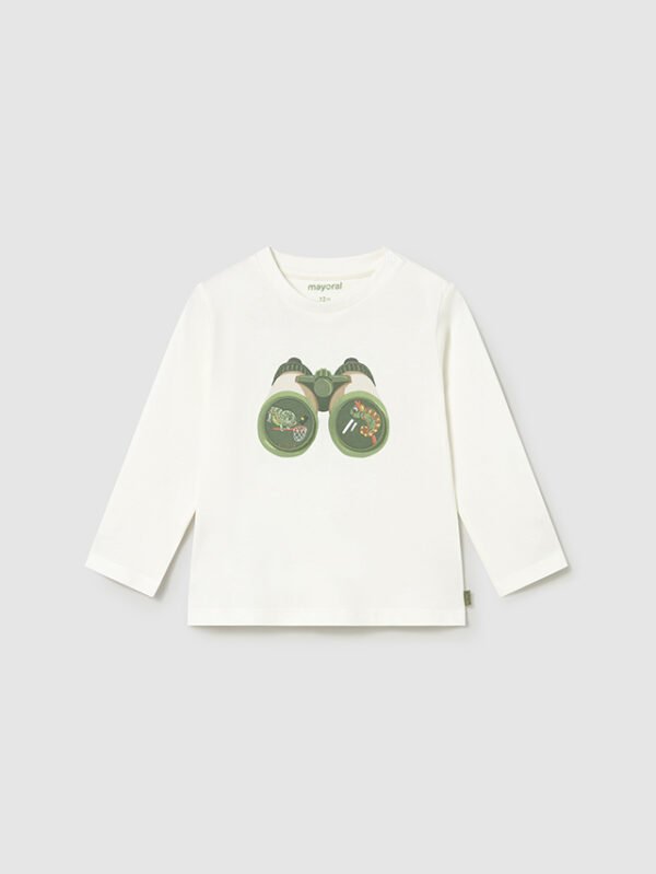 Maglietta manica lunga per bambino. Girocollo. Elementi decorativi: Serigrafia (print). Capo con codice QR appartenente alla nostra collezione interattiva PLAY WITH. Scansionando il codice QR si accede a un esclusivo videogioco Mayoral.
