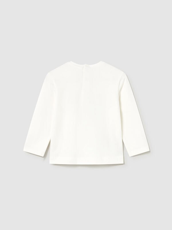 Maglietta manica lunga per bebé con polsini elasticizzati. Collo modello lupetto. Chiusura con bottoni a pressione nella parte posteriore. Morbido tessuto di cotone elasticizzato. Elementi decorativi: Serigrafia (print).