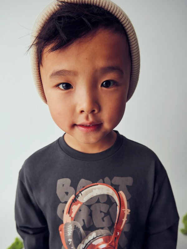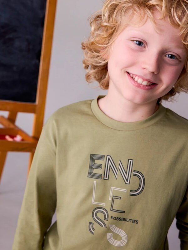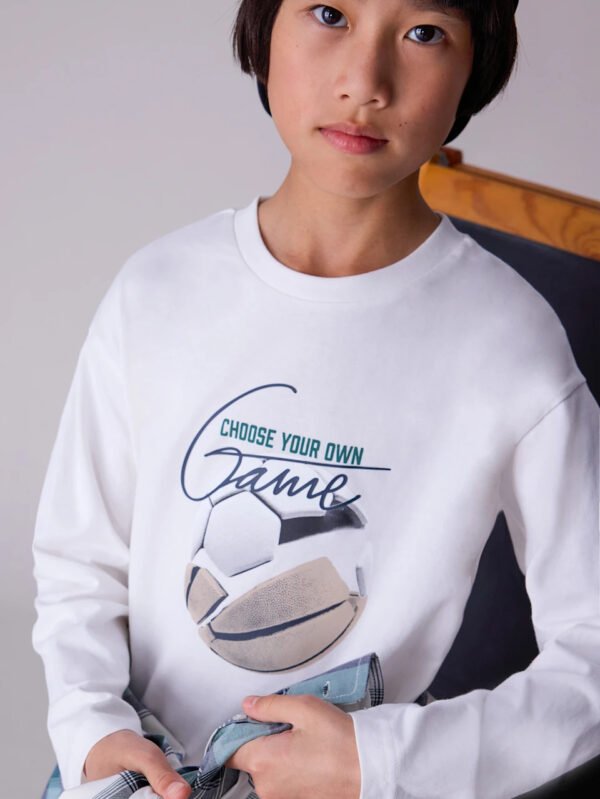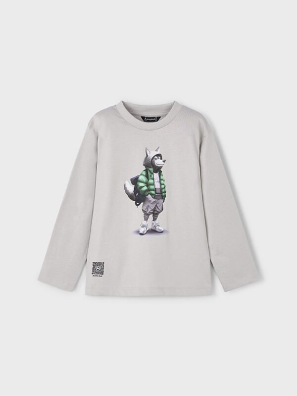 Maglietta manica lunga per bambino. Girocollo. Elementi decorativi: Serigrafia (print). Capo con codice QR appartenente alla nostra collezione interattiva PLAY WITH. Scansionando il codice QR si accede a un esclusivo videogioco Mayoral.