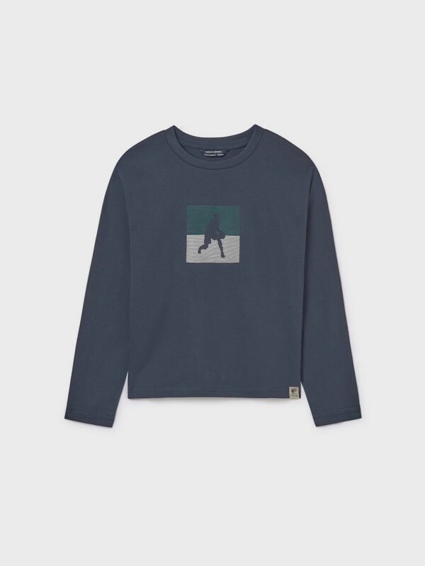 Maglietta manica lunga per bambino. Girocollo. Tessuto 100% cotone. Elementi decorativi: Serigrafia (print).