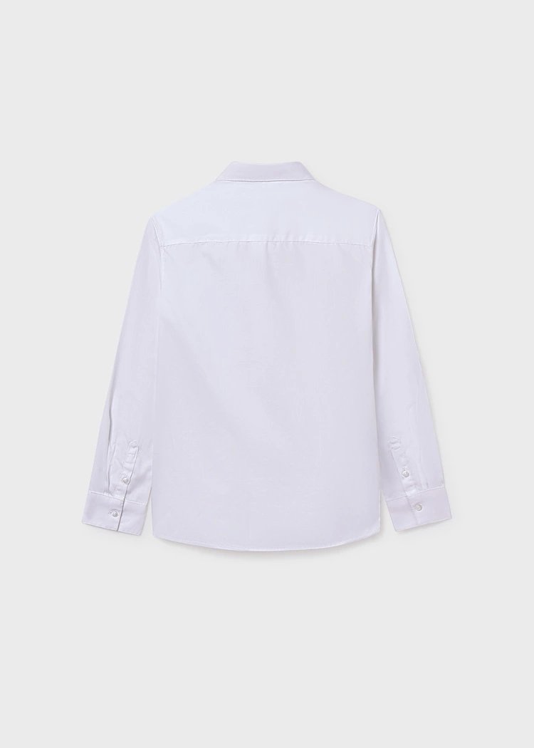 Camicia manica lunga per ragazzo con polsini con bottoni. Colletto modello camicia. Modello dal taglio classico. Chiusura con bottoni nella parte anteriore.