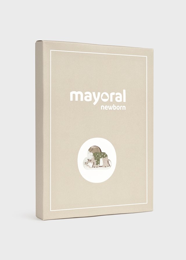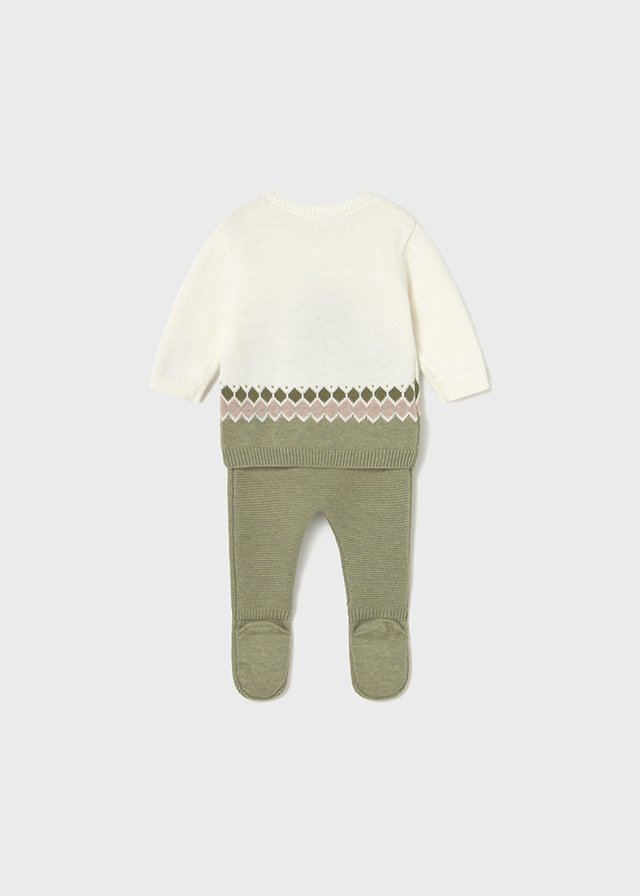 Questo completo in tricot di due pezzi per neonato è costituito da maglioncino e ghettina abbinata.