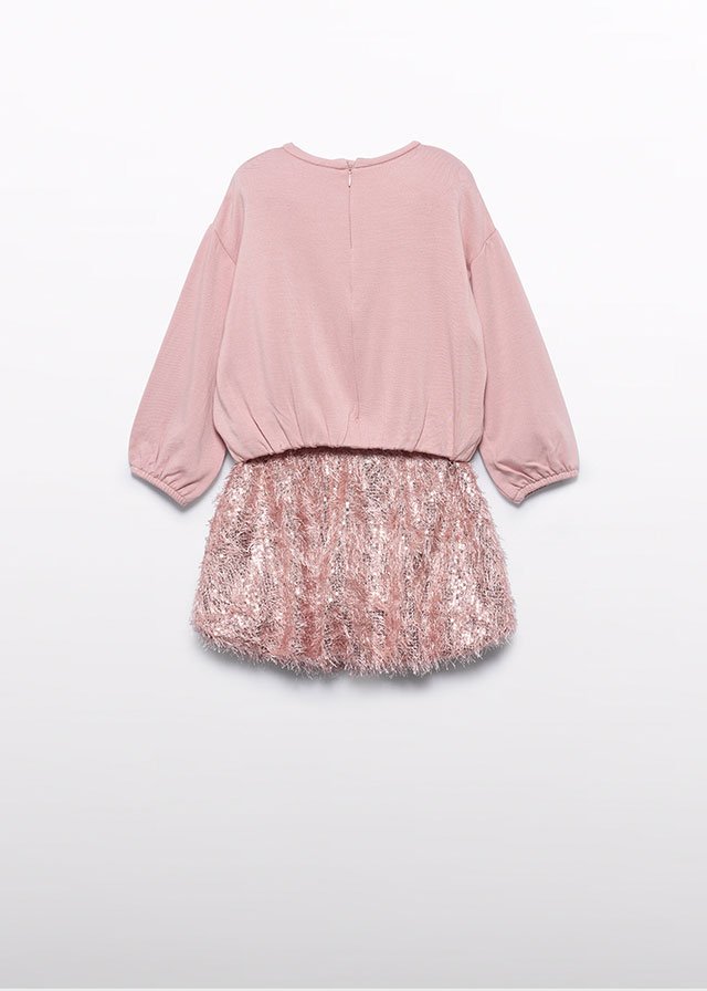 Completo bambina rosa con felpa felpata e gonnellina con frange