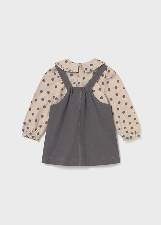 Deliziosa salopette gonna per neonata. Chiusura con bottoni. Tasche funzionali nella parte anteriore.