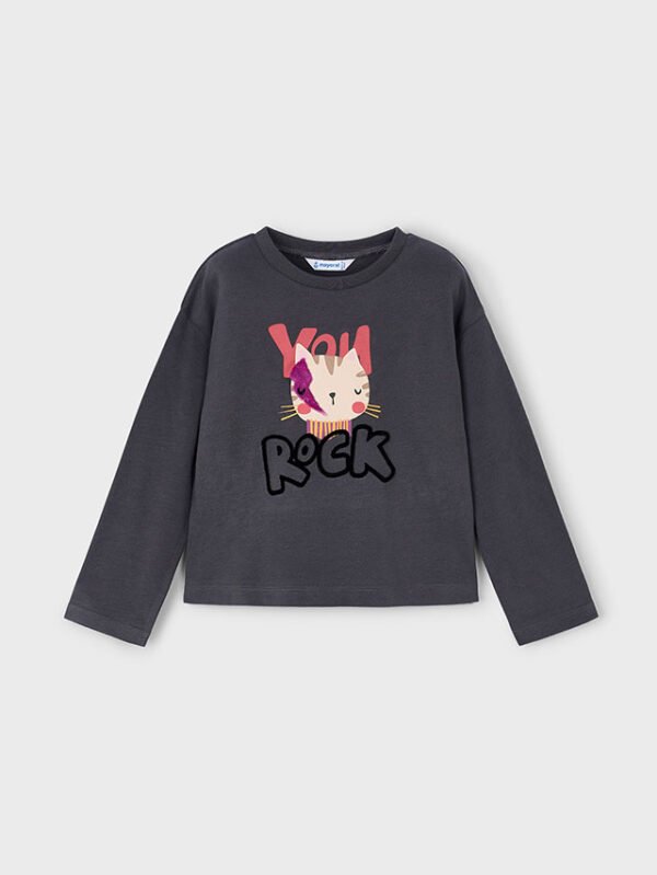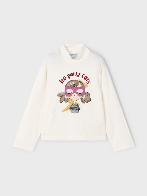 Felpa manica lunga per bambina. Linea dal design casual ampio lungo i fianco abbinabile a pantaloni o leggings. Elementi decorativi: glitter, Serigrafia (print).