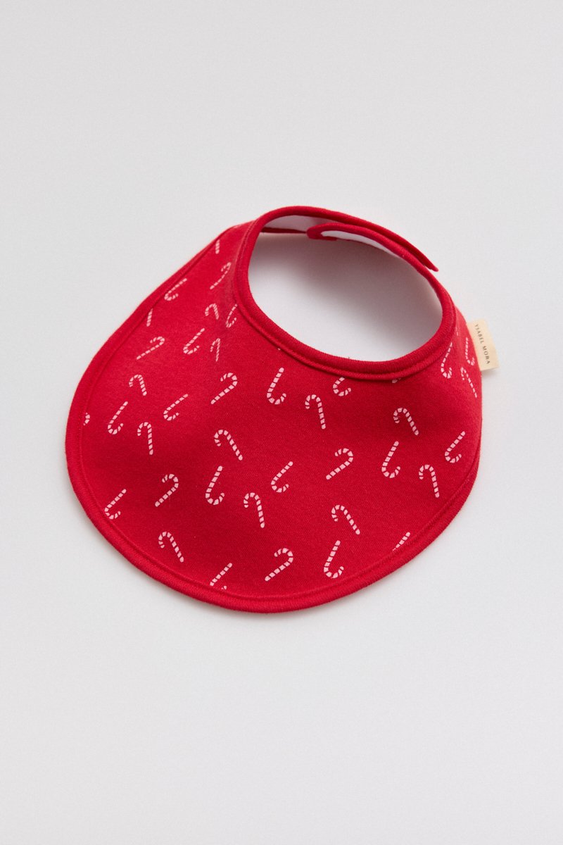 Confezione da 2 bavaglini natalizi. Realizzati in cotone naturale e con interno impermeabile, proteggono efficacemente i vestitini dei più piccoli durante i pasti. I loro motivi natalizi, raffiguranti un simpatico elfo e bastoncini di zucchero su sfondo rosso, aggiungono un delizioso tocco natalizio. La chiusura in velcro consente una vestibilità rapida, comoda e sicura.