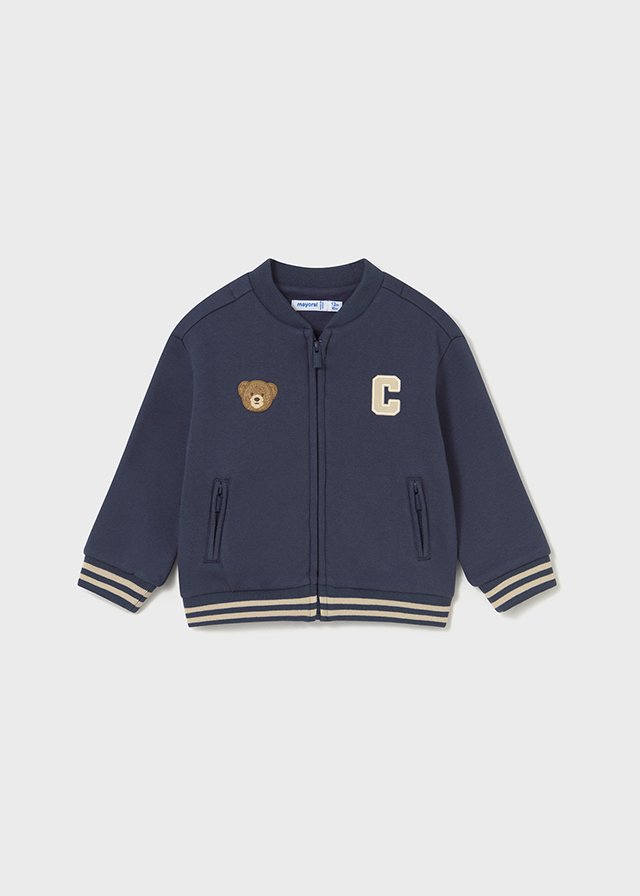 Felpa manica lunga per neonato con polsini elasticizzati a contrasto. Chiusura anteriore con cerniera nascosta. Tasche funzionali nella parte anteriore. Elementi decorativi: applicazione decorativa, disegno nella parte anteriore e posteriore del capo, Serigrafia (print).