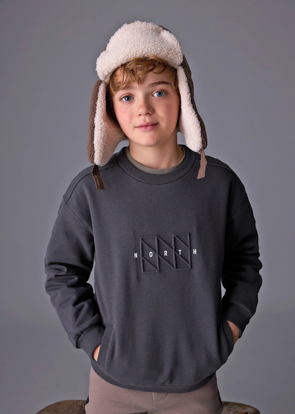 Felpa manica lunga per ragazzo. Girocollo. Bolsillos delanteros. Elementi decorativi: dettaglio in rilievo (embossed), Serigrafia (print).