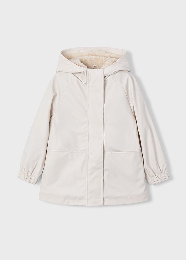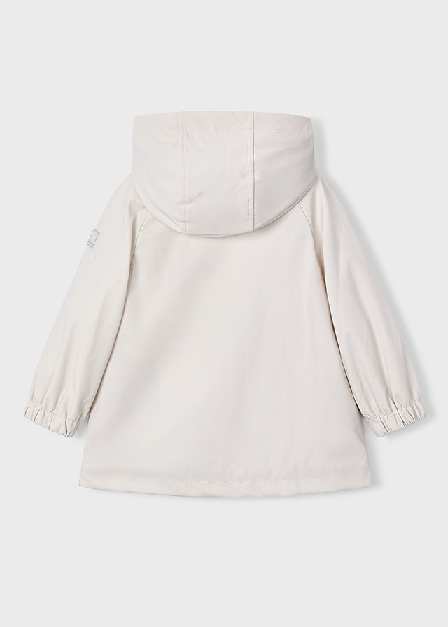 Impermeabile manica lunga per bambina con polsini elasticizzati. Colletto con cappuccio. Chiusura centrale con cerniera. Morbida fodera interna in poliestere. Tasche funzionali nella parte anteriore.
