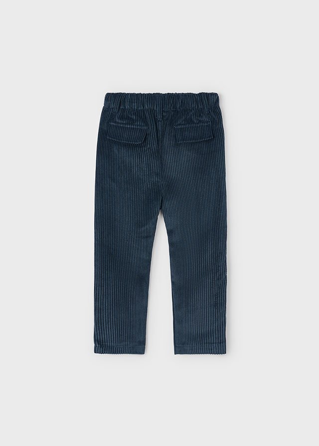 Pantalone per bambino modello jogger ampio nella parte superiore e più stretto nella caviglia. Ideale per un look sportivo e che riflette la tendenza di strada. Elastico regolabile in vita che garantisce un migliore vestibilità. Caldo tessuto di panno comodo e morbido. Tasche funzionali posteriori. colore blu