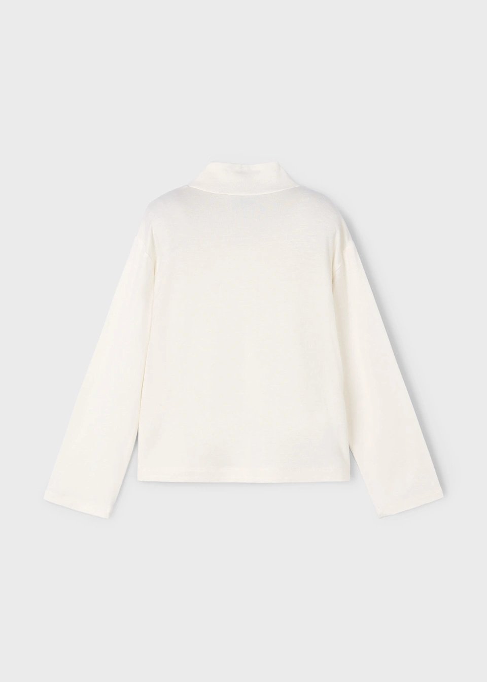 Maglietta manica lunga per bambina. Collo modello lupetto. Tessuto morbido per una comodità giornaliera. Elementi decorativi: borchie, Serigrafia (print).