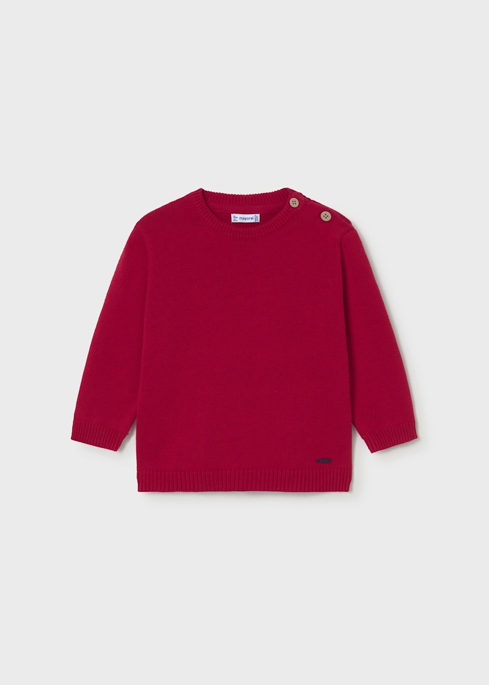 Maglione manica lunga per bebé rosso. Chiusura con bottoni sulla schiena per facilitare la vestibilità del capo.
