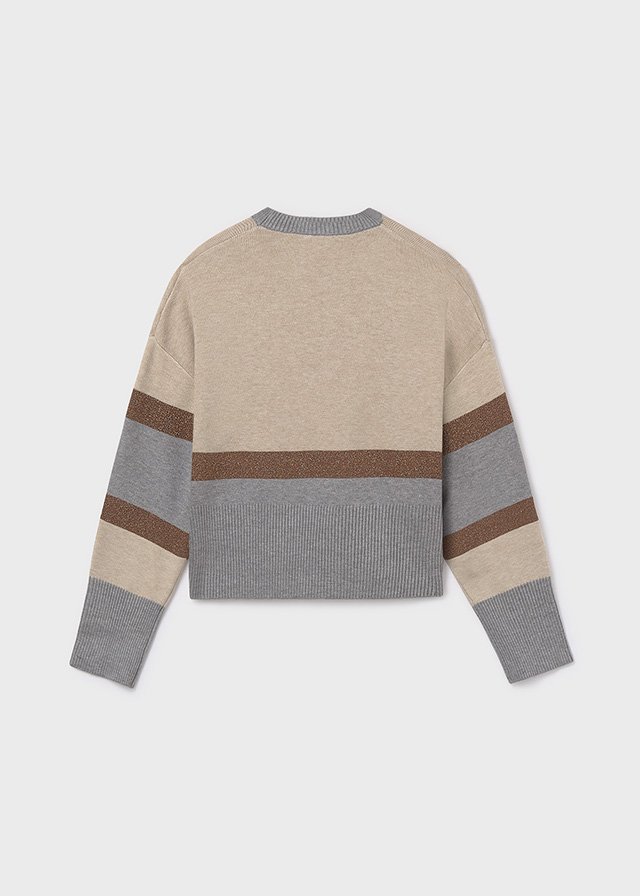 Contiene poliestere riciclato. Maglione manica lunga per ragazza. Girocollo. Elementi decorativi: dettagli a costine.