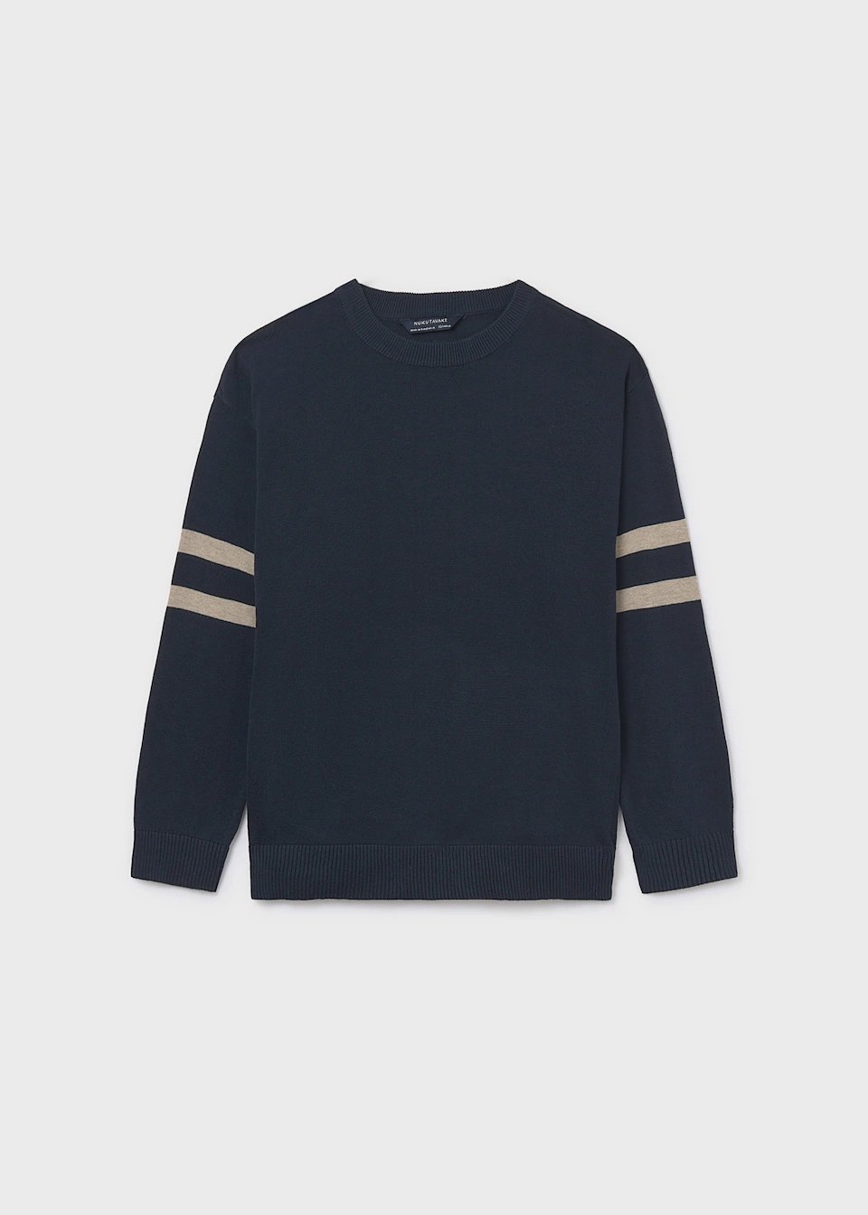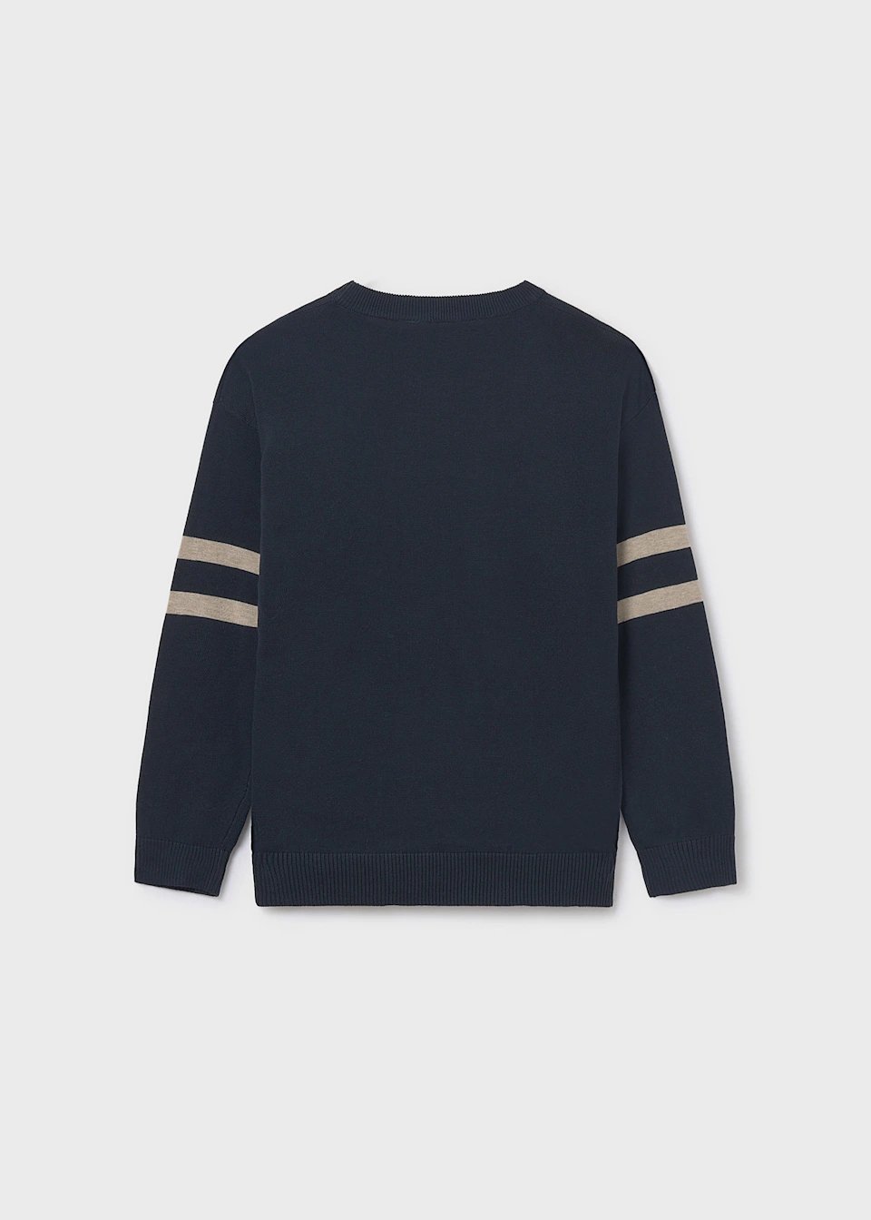 Maglione manica lunga per ragazzo con dettagli a contrasto. Girocollo