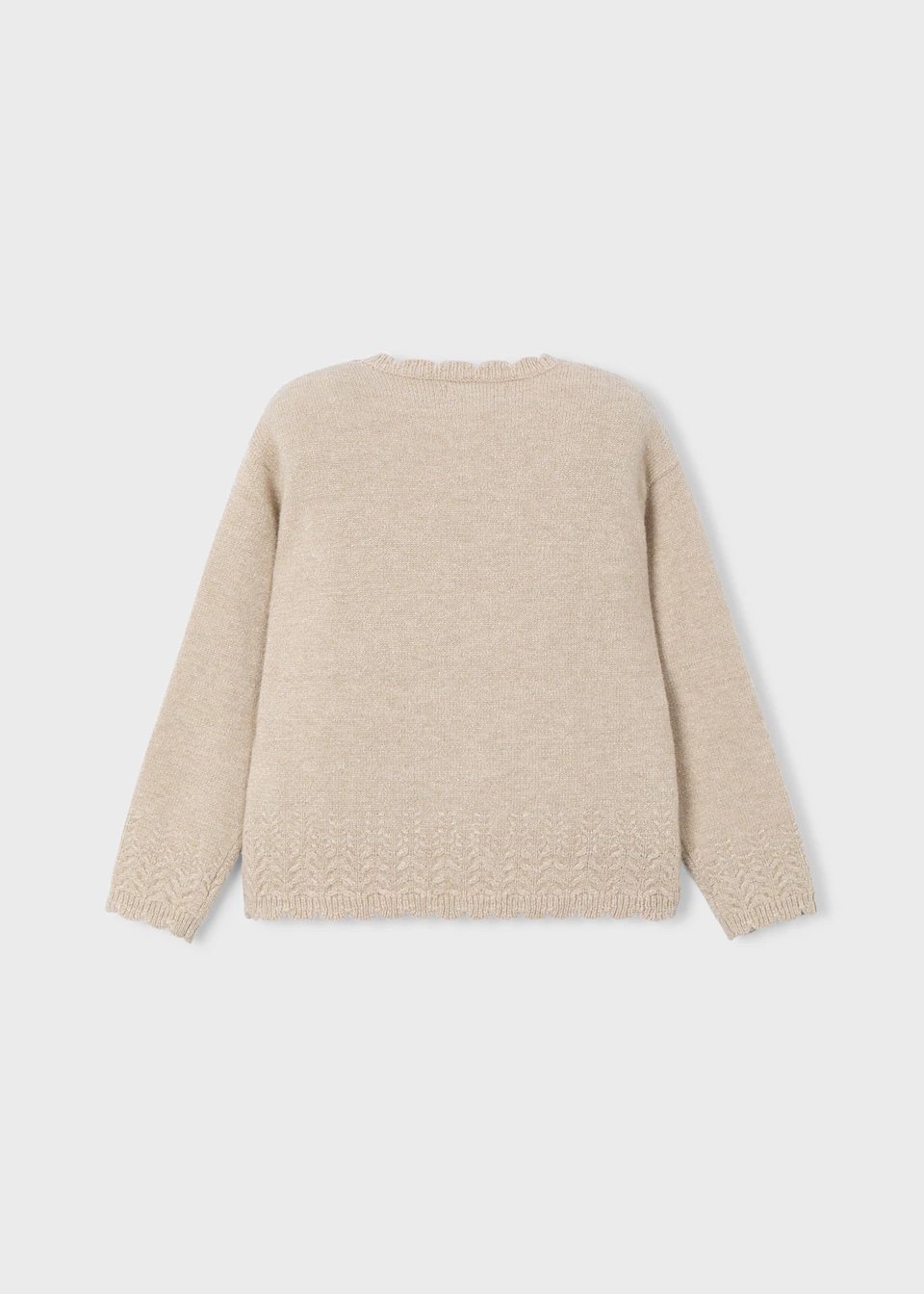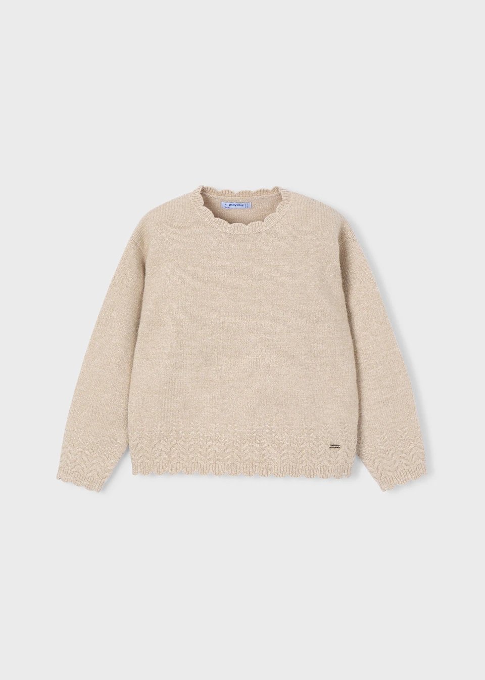 Maglione manica lunga per bambina. Colletto con onde. Comodo tessuto di punto. Design con terminazioni onda.