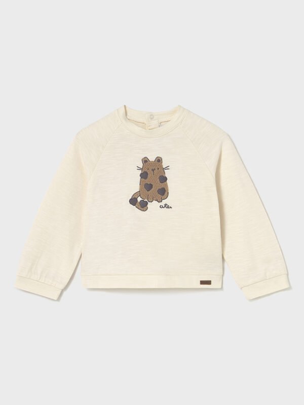 Felpa casual per bebé. Girocollo. Chiusura con bottoni a pressione nella parte posteriore. Elementi decorativi: applicazione decorativa. Gonna per bebé. Elastico in vita. Confezione in tulle leggero e vaporoso. Modello con riccio e volant.Completo leggings a zampa e felpa neonata