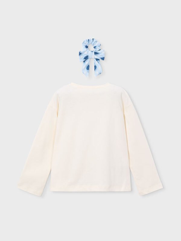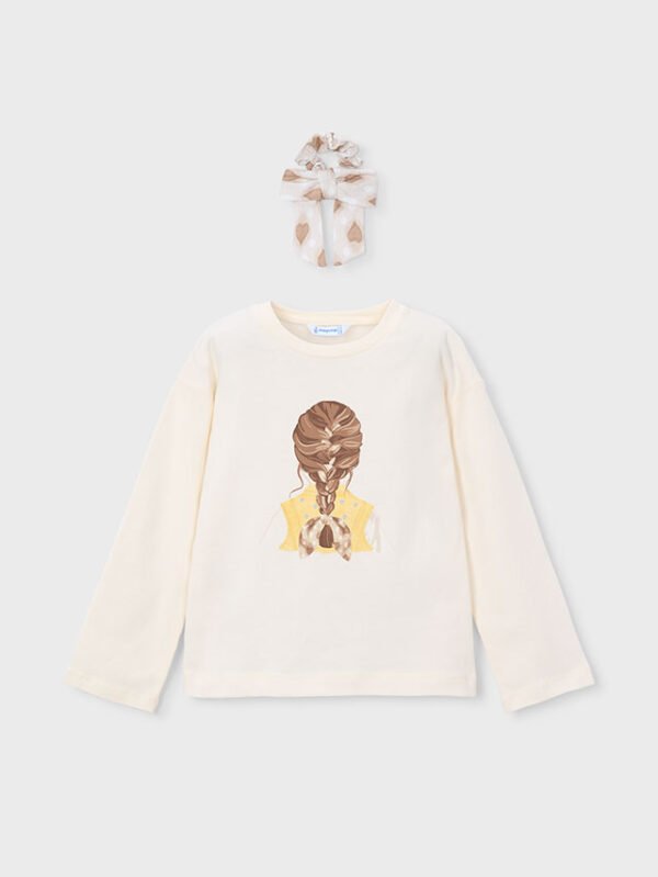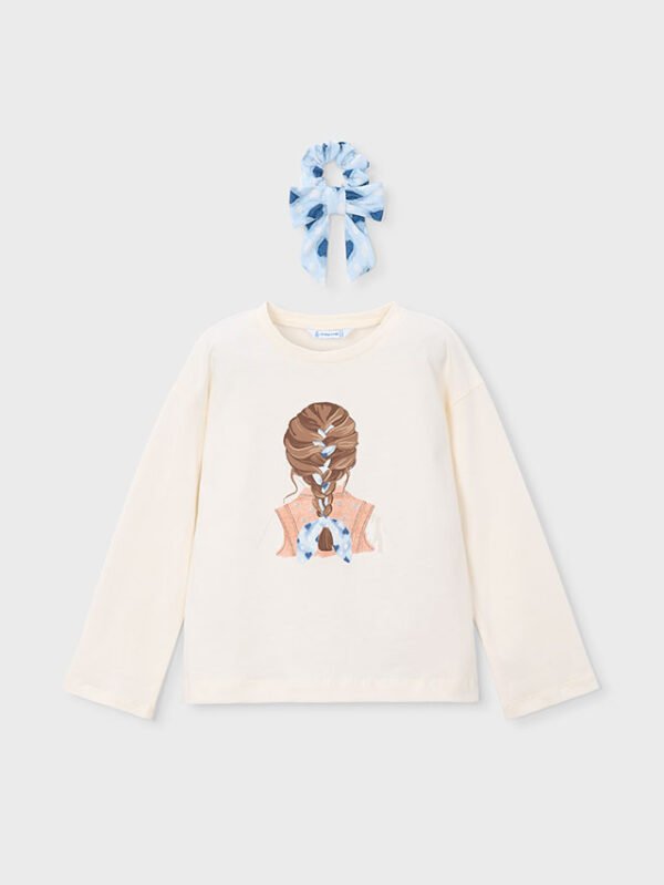 Maglietta manica lunga con elastico per capelli stampato bambina